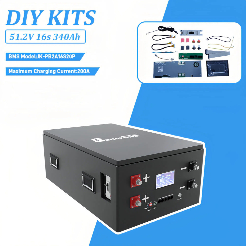 Complete DIY Case Kit: Case + Smart BMS + LCD Display + Switch + Copper Busbars + Wiring Harness + Communication Board + Active Balancer + Insulation (Epoxy Resin Boards) + Connection Strips + Terminals + Screws & Full Accessories |