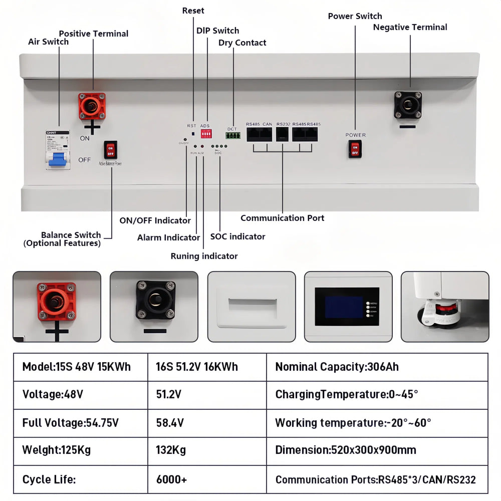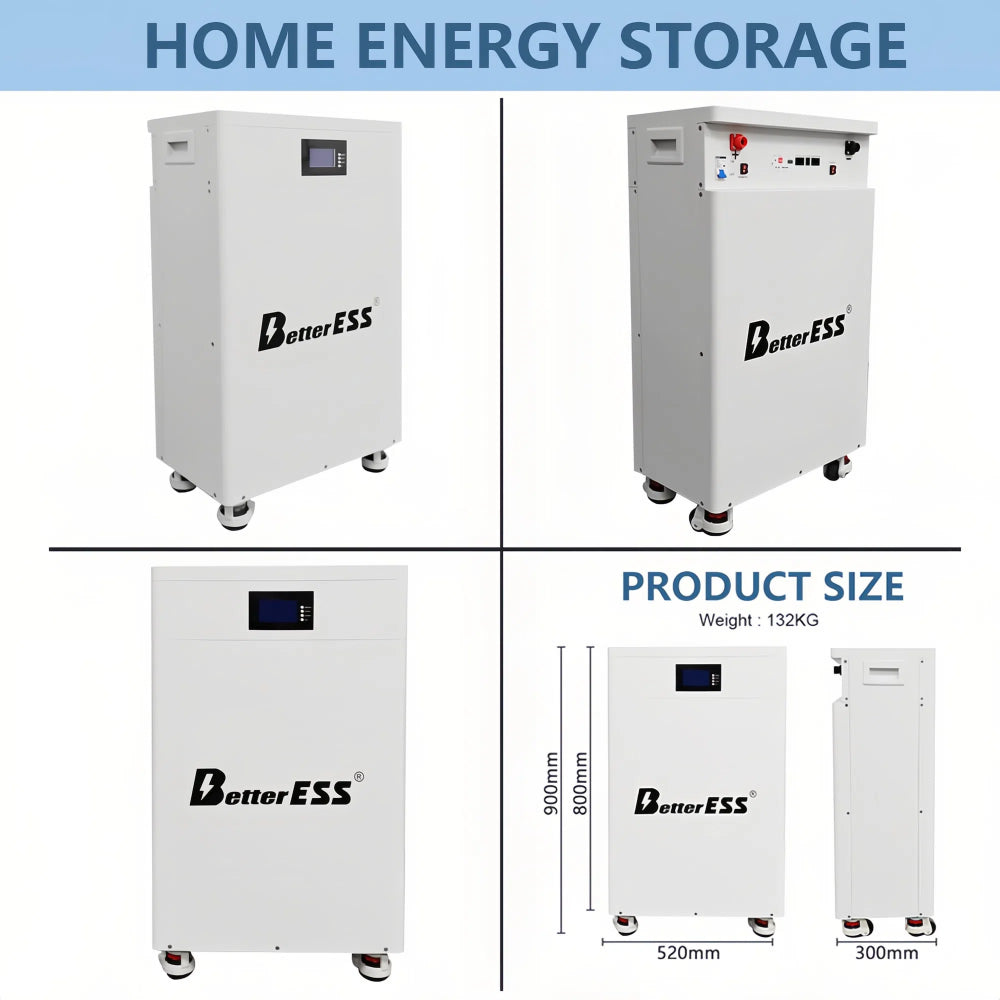 【Feature】: BetterESS 51.2V 200Ah 10KWh lithium battery built-in active balancer module and lifepo4 temperature-sensitive fire extinguisher, this model shipped from China; The model shipped from Germany without active balancer module and fire extinguisher; The 200A model 10kwh battery comes with an air switch; the 200A battery model does not have an air switch due to lack of space, but you can connect an external air switch.