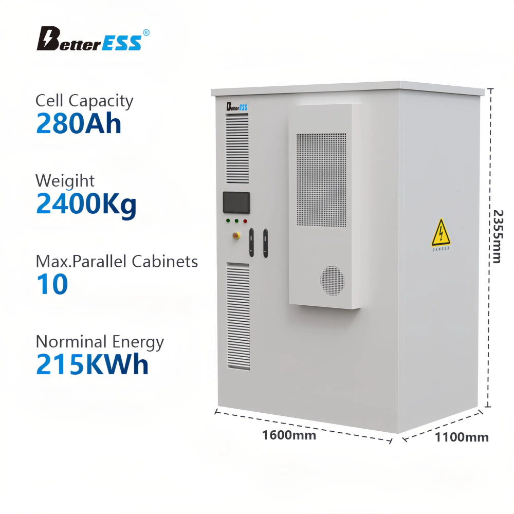 Battery Energy Storage System 215kwh Battery Cells Outdoor Power Storage Systems For Sale