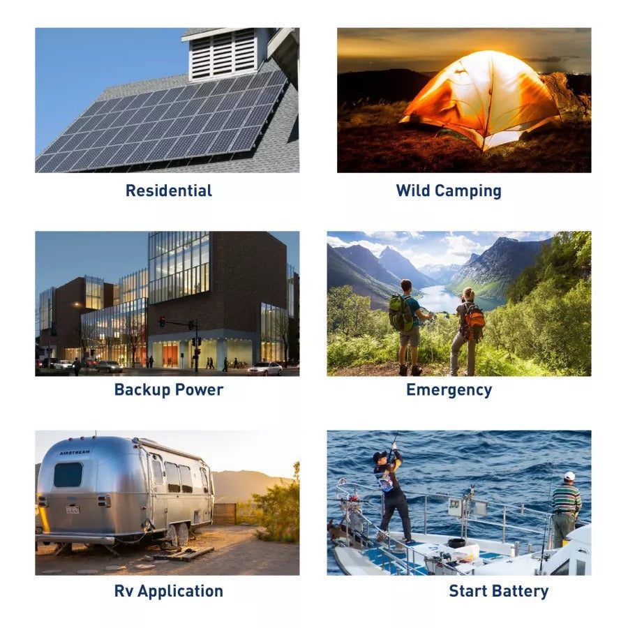 Solar energy storage, solar power system, UPS supply, Engine starting battery, Electric bicycle/motorcycle/scooter, Golf trolley/carts, RV, EV, Caravan So on.